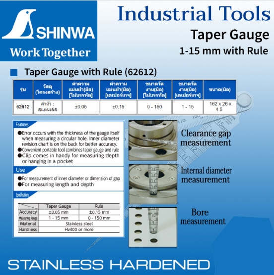 Thước lá kết hợp đo khe Shinwa 62612 được hãng nổi tiếng Shinwa đã hơn 60 năm thành lập. Thước đạt tiêu chuẩn chất lượng Công Nghiệp JIS của Nhật.